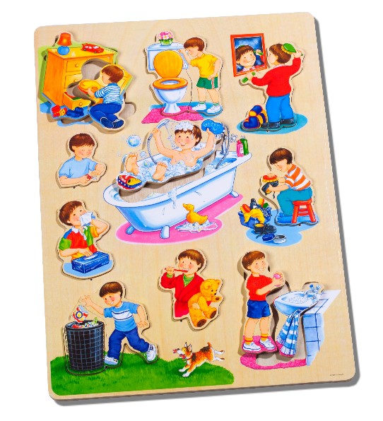 ”生活好習慣”拼圖-生活化的拼圖,可以讓小朋友看圖學會怎麼養成”好習慣”,例如: